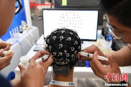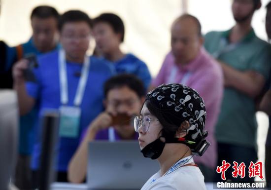 8月23日,一名参赛选手在201918luck新利首页“BCI脑控机器人大赛”比赛中。18luck新利首页是在北京亦创国际会展中心举行的2019njwgl的重要环节之一。